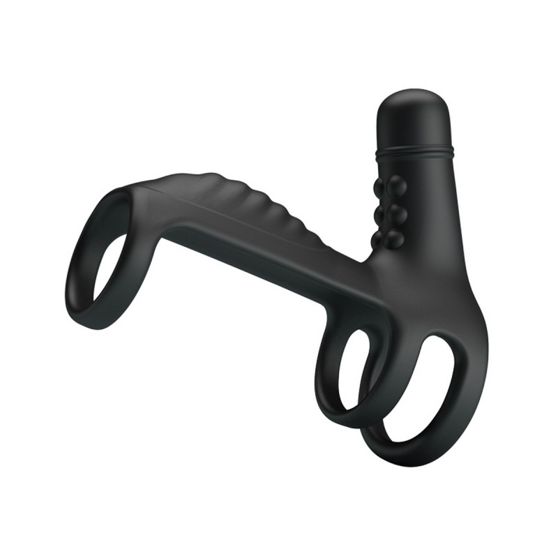 Девайс надевается на эрегерированный половой член при помощи эластичных силиконовых колец. Вибрирующая силиконовая поверхность при этом находится сверху на члене. Кольцо для мошонки надежно удерживает девайс на органе и усиливает мужчине стимуляцию. А, клиторальный стимулятор целенаправленно ласкает клитор при каждой фрикции, имитируя оральные ласки!