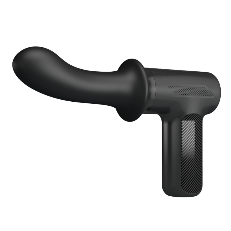 Форма вибратора максимально анатомична и не доставляет дискомфортных ощущений во время использования. Увеличенная головка с особенным загибом предназначена для поиска и массажа G-зоны либо простаты. Выполнен девайс в виде пистолета, который идеально ложится в руке и позволяет использовать игрушку с максимальным комфортом